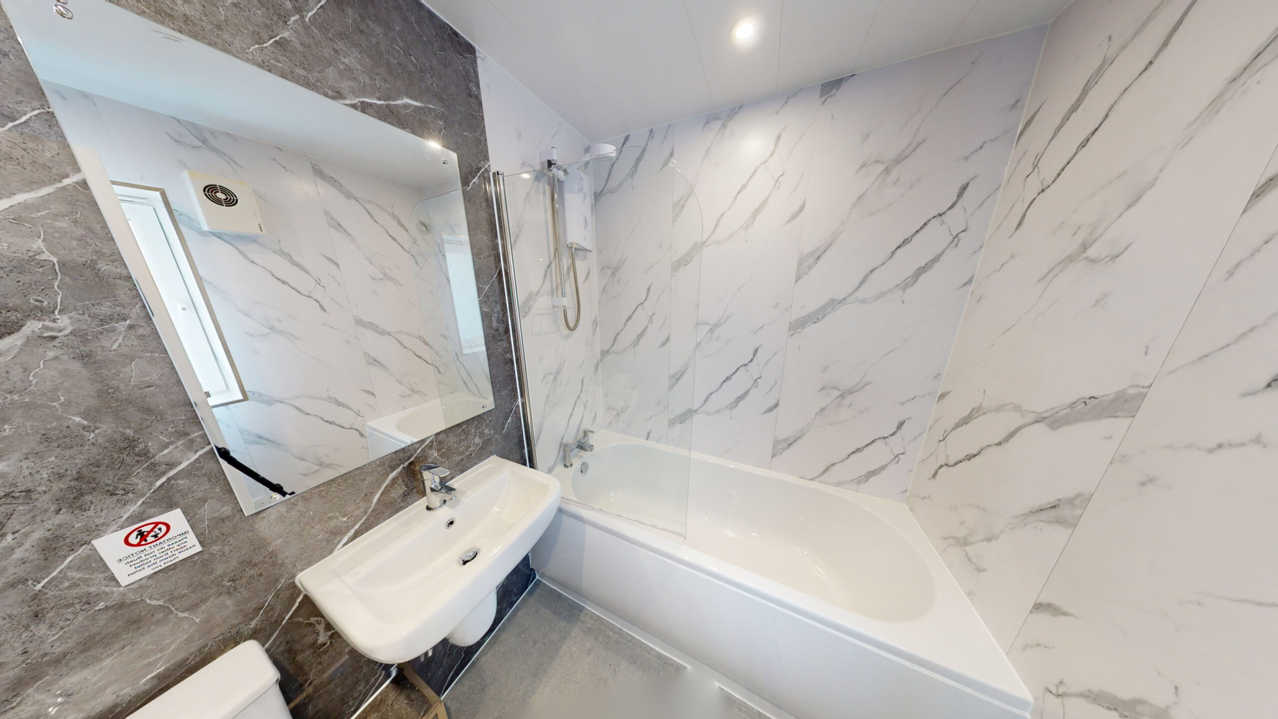 Each apartment is finished to a good standard furnished with modern contemporary furniture and benefits from open plan lounge, dining and kitchen areas, separate bathroom (with W/C). The Bedroom is fitted out to an excellent standard to meet residents’ needs and includes a monitor, desk, chair, double bed, wardrobe, bookshelves, and pin boards with LED backlighting..